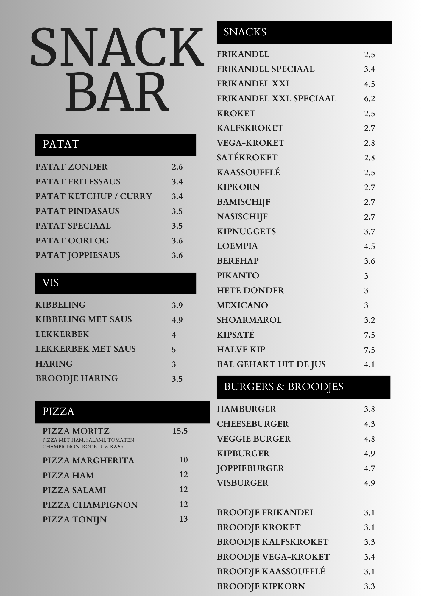 Vis- en Snackrestaurant Moritz is al jarenlang een begrip in Petten en omstreken. Wij zijn begonnen in 1962 met een patat/snack kiosk van 2 x 4 meter.